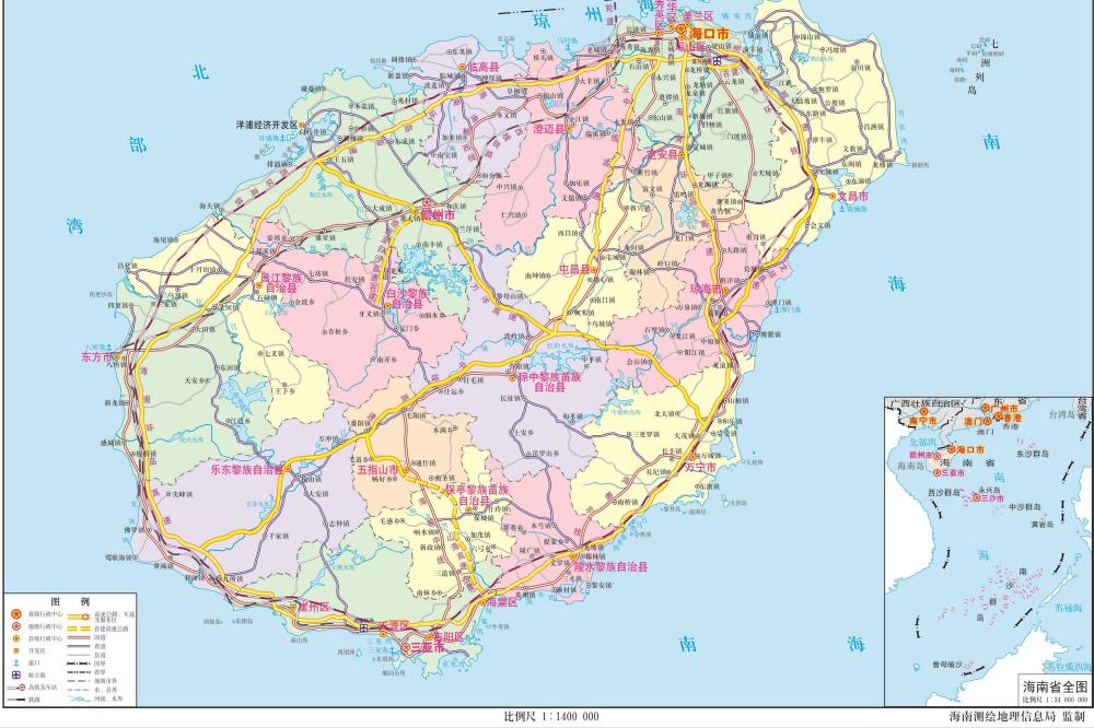 海南省,简称“琼”,是中华人民共和国最南端的省级行政区,省会海口市;地处中国华南地区,北以琼州海峡与广东划界,西临北部湾与广西、越南相对,东濒南海与台湾对望,东南和南部在南海与菲律宾、文莱、马来西亚为邻;海南地势为中部高四周低,中间高耸,呈穹窿山地形;属热带海洋性季风气候;陆地总面积3.54万平方公里,管辖海域总面积约200万平方公里。截至2022年,海南省辖4个地级市,5个县级市、4个县、6个自治县。截至2021年,海南省常住人口1020.46万人,比上年增加12.34万。
