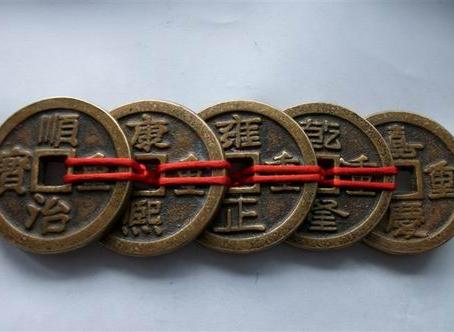 五帝币是指清朝顺治、康熙、雍正、乾隆、嘉庆五个皇帝的铜钱,据说有挡煞、防小人、避邪,旺财之功效。女孩子可以用红线把五帝钱穿起来挂在包包上,也可以随身挂带,用以避邪。古铜钱按“外圆内方”、“天人合一”的铸制,取其象天法地,是古代阴阳五行学说的具体体现,拥有厚重的文化属性。古代民间,一直有用古铜钱驱邪招福的习俗,通常将五枚铜钱串在一起,代表着五行力量。
