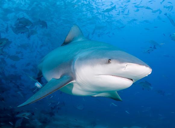 低鳍真鲨,中文学名公牛真鲨(学名:Carcharhinus leucas)是真鲨科、真鲨属的一种鲨鱼。体呈纺锤型,躯干粗大。头宽扁。尾基上下方各具一凹洼。吻端非常宽圆而短。眼圆,瞬膜发达。前鼻瓣呈宽三角形;无口鼻沟或触须。口裂弧形,口闭时上下颌紧合,不露齿;上颌齿侧扁而宽,边缘具细锯齿,齿尖直立或略外斜,无小齿尖;下颌齿较窄而直立或稍颌斜,边缘具锯齿,近基底则平滑。喷水孔缺如。