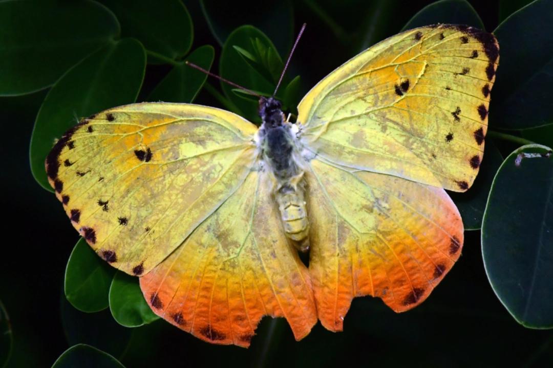 蝴蝶(英文名:butterfly):鳞翅目凤蝶总科昆虫的统称,共有5科1769属18987种(除去COL中广蝶科的1属33种);在中国已有记录的蝴蝶约2000种,种类数量较丰富,约占全球蝴蝶总量的1/10。蝴蝶成虫大多数体中型至大型,两翅展开时的宽度,大都在15~260mm之间;全球最大的蝴蝶是亚历山大鸟翼凤蝶(Ornithoptera alexandrae),两翅展开可达约27cm。最小的蝴蝶是蓝灰蝶(Everes argiades),翅展仅7mm。蝴蝶成虫身体呈长圆柱形,分为头部、胸部、腹部三部分,具膜质翅2对,躯体及翅膜上均覆盖有鳞片和细毛,从而形成不同的彩色斑纹。幼虫为毛虫式,身上通常有色斑、线纹和刺毛的分布,身体大致呈圆柱形,由头部及13个体节组成。